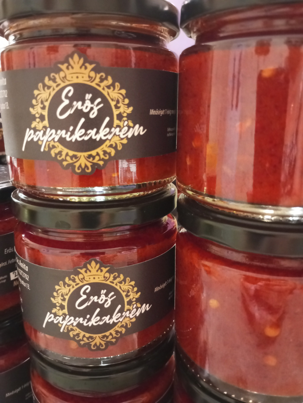 Erős paprikából készült termékünk ajánlott szendvicsekhez, levesbe, pizzára, lángosra, pácoláshoz. Gazdag ízvilágú, szêles körben felhasználható csípős -erôs paprika krém. Összetevők : erős paprika, olívaolaj, só.
