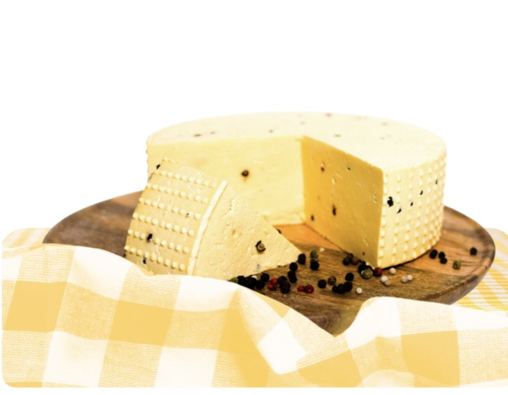 Pasztörizált, friss tehén tejből készült, tarka borssal ízesített sajt. Egy darab 30 dkg súlyú.