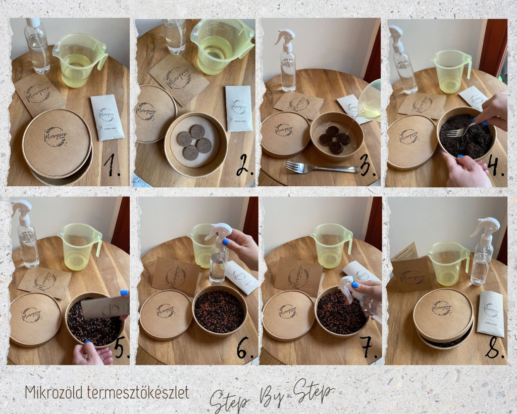 A brokkoli mikrozöld egy rendkívül tápláló, enyhe káposztaízű zöldségféle, amely tele van vitaminokkal. A brokkoli mikrozöldek számos egészségügyi előnnyel rendelkeznek a magas vitamin- (A, B, C, E, K), ásványi anyag- (kálium, vas, cink, magnézium) és rosttartalmuk miatt. Brokkoli mikrozöld és csíra készlet: Otthoni termesztő készlet, ami tartalmazza: - A csíráztatáshoz szükséges magokat (2 adag) - Kókuszrost termesztő közeg korong (2 adag) - 100%-ban lebomló környezetbarát papírtálca tetővel - Növény jelölőt - Leírást a csírázatatáshoz A tasakban lévő mag mennyisége és a termesztő közeg két adag termesztésre elegendő! Magas csírázó képességű, gyorsan növő és könnyen termeszthető. Vegyszermentes superfood! Termeszd otthon vegyszermentesen a mikrozöldjeidet és fogyaszd egészséggel, ezeket a vitaminnal teli mikrozöldségeket. Felhasználható salátákba, szendvicsekhez, készételekhez, főzelékbe, turmixokba, tojásos reggeli ételekhez. Erősíti az immunrendszered, ellát vitaminnal és ásványianyaggal, és közben megszínesíti az ételeidet. Vitaminbomba az egész családnak! Könnyen termeszthető, vegyszermentes superfood! Mikrogreen Garden