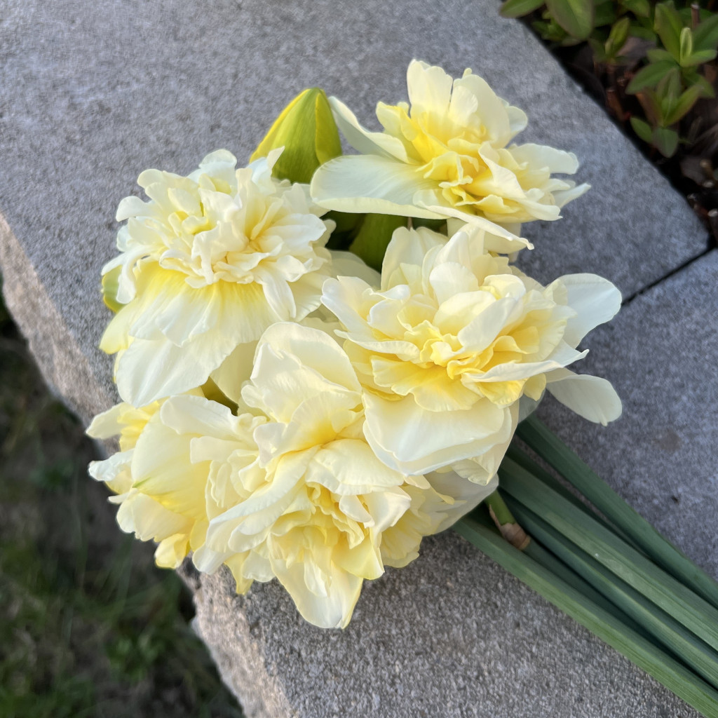 Saját termesztésű, frissen szüretelt gyönyörű nárciszok egyenesen a kertünkből. Nem mindennapi nárciszok: különleges színek, teltvirágú, fodros szirmú változatok vegyesen kötegelve. 9 szál/csokor Szobahőmérsékleten kb. 4-5 nap a vázatartósságuk (tűző napra ne tegyük őket!). Kérlek, vásárlás előtt vedd figyelembe, hogy az aktuális virágkínálatunk hétről-hétre változik, ezért a csokrokról feltöltött mintaképek csak személtető jellegűek, nem feltétlenül azonosak a megvásárolt termékekkel! Köszönjük!