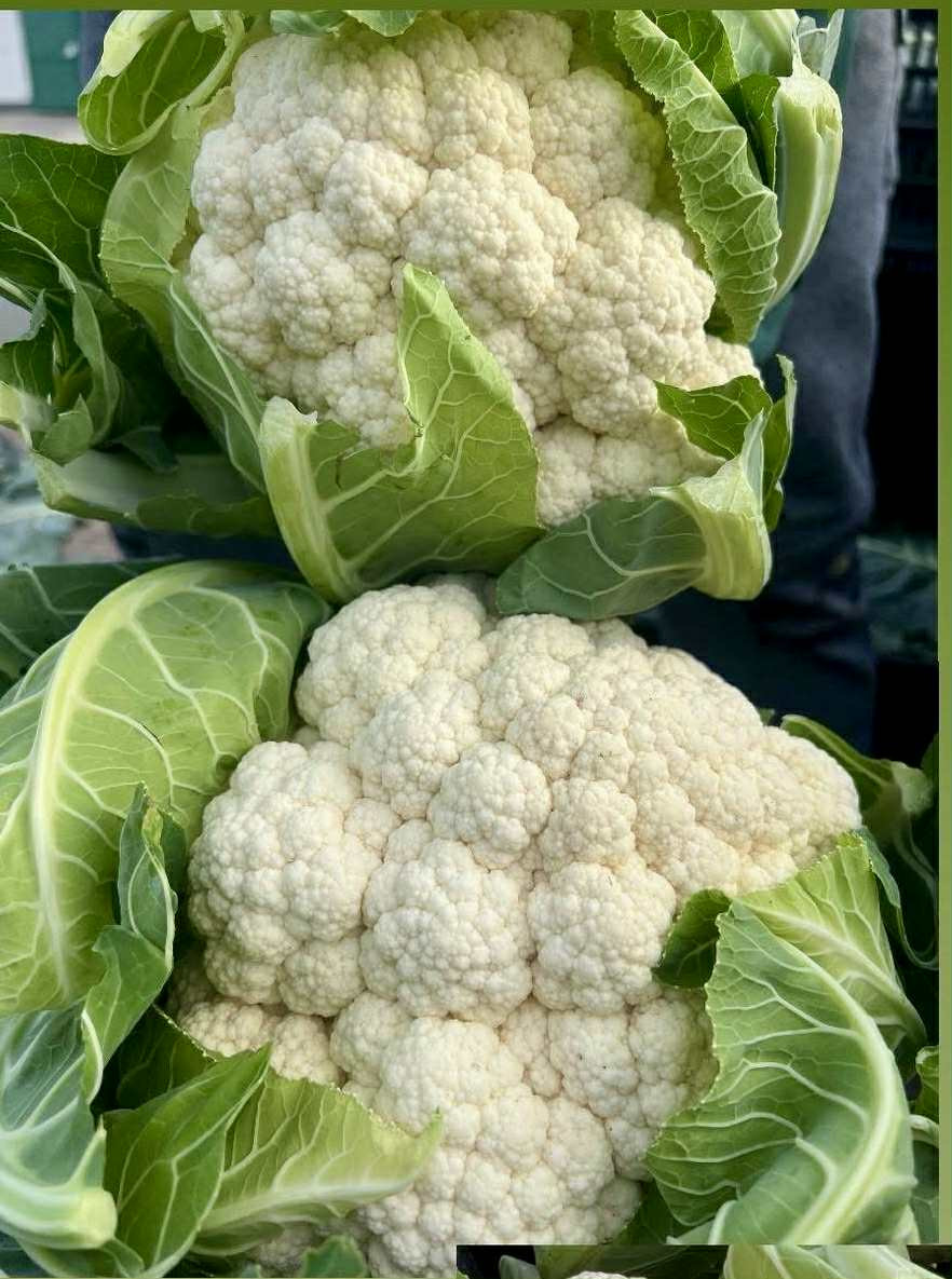 Frissen szedett karfiol. A karfiolok súlya 1kg és 2kg közötti. Az ár a súlymérés után változik.