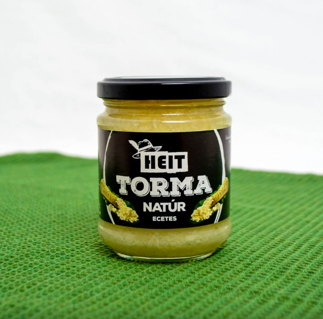ERŐS Eredeti karakteres csípős ízvilág, minőségi magyar torma feldolgozásával. Ajánljuk húskészítmények, felvágottak, sültek, valamint a hagyományos orjaleves mindenkori kiegészítőjeként. Összetevők: torma (50%), ivóvíz, ételecet, cukor, étkezési só, tartósítószer (nátrium-benzoát, kálium-metabiszulfit). Gluténmentes. Laktózmentes. Vegán. Felbontás után hűtve tárolandó. Nettó tömeg: 200 G.