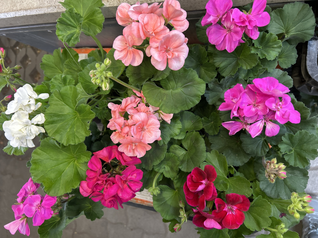 Álló muskátlik lila , barack rózsaszín, fehér és málna piros színekben 1100 ft darabja.
