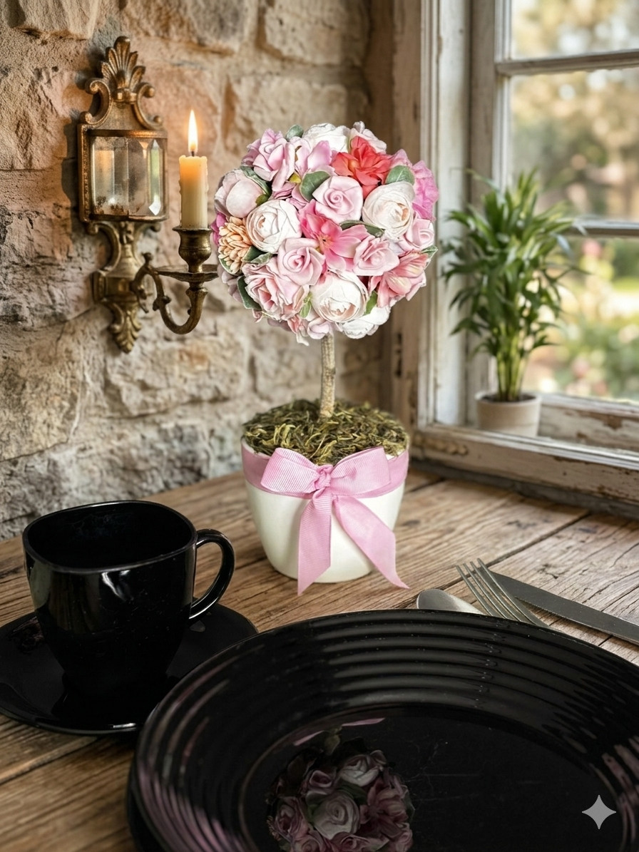 Virágos fácska kerámia kaspóban. Magassága: 23 cm