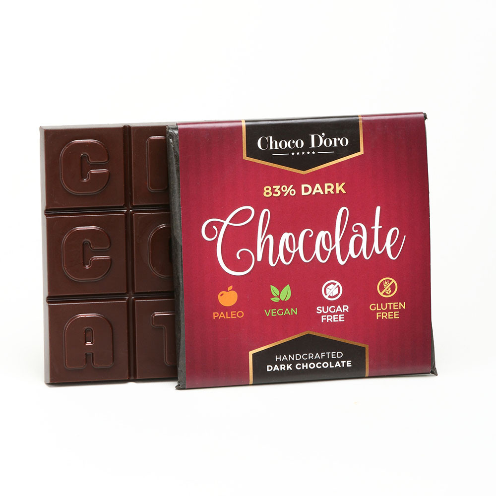 Paleo kézműves csokoládé, 83%-os étcsokoládéból, etritittel édesítve. 80g/ tábla VEGÁN termék Glutén- és tejmentes.