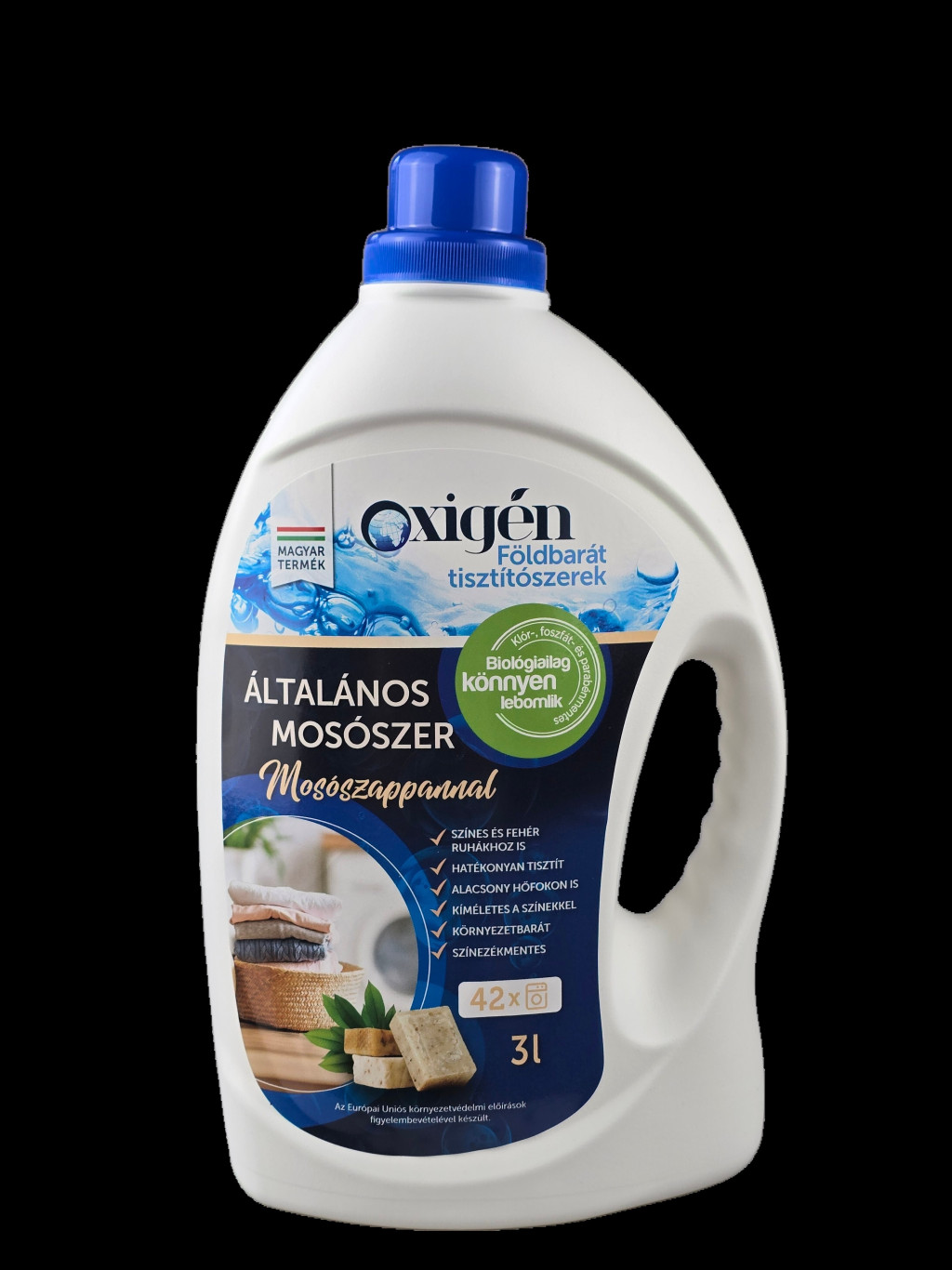 Oxigén Földbarát tisztítószerek Általános mosószer mosószappannal 3l színes és fehér ruhákhoz