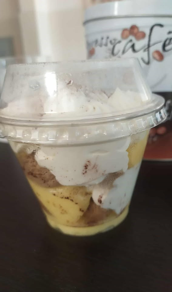 Tiramisu pohár desszert. Frissen főzött kávéba áztatott piskóta, könnyű, habos vaníliakrém. Gluténmentes, tejmentes, cukormentes, szójamentes. Összetevők: rizsliszt tápiókakeményítő kukoricakeményítő tojás* eritrit és stevia kávé kakópor vanília aroma vegán habalap
