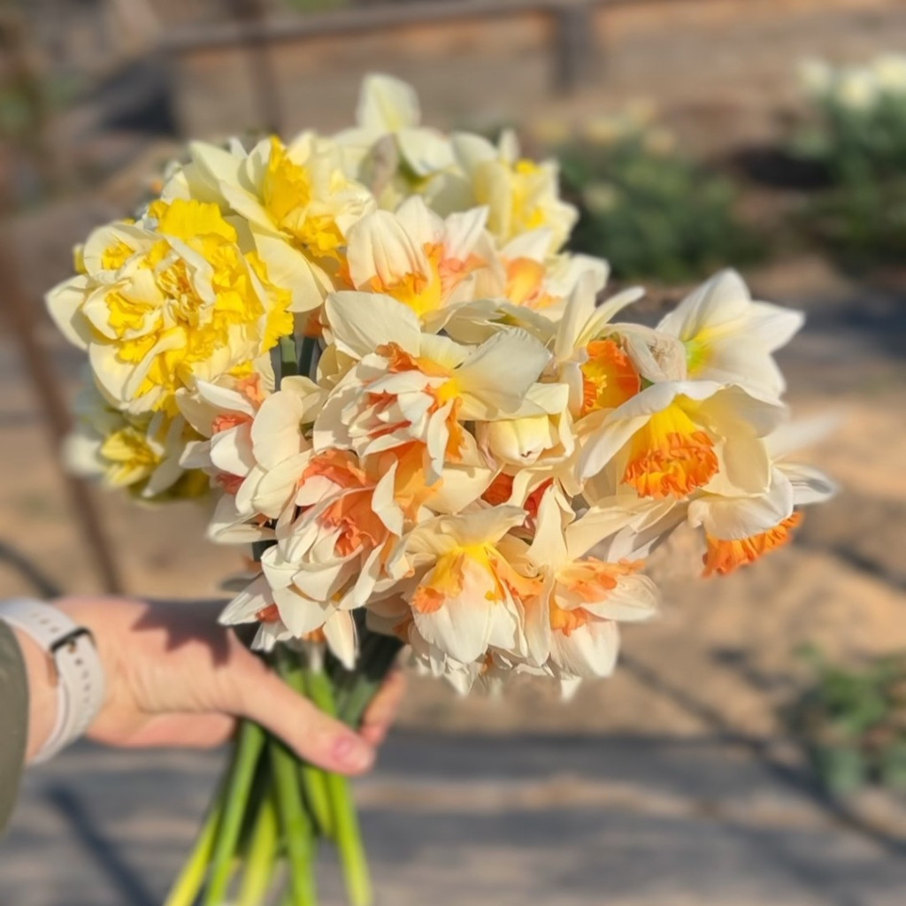 Saját termesztésű, frissen szüretelt gyönyörű nárciszok egyenesen a kertünkből. Nem mindennapi nárciszok: különleges színek, teltvirágú, fodros szirmú változatok vegyesen kötegelve. 5 szál/csokor Szobahőmérsékleten kb. 4-5 nap a vázatartósságuk (tűző napra ne tegyük őket!). Kérlek, vásárlás előtt vedd figyelembe, hogy az aktuális virágkínálatunk hétről-hétre változik, ezért a csokrokról feltöltött mintaképek csak személtető jellegűek, nem feltétlenül azonosak a megvásárolt termékekkel! Köszönjük!